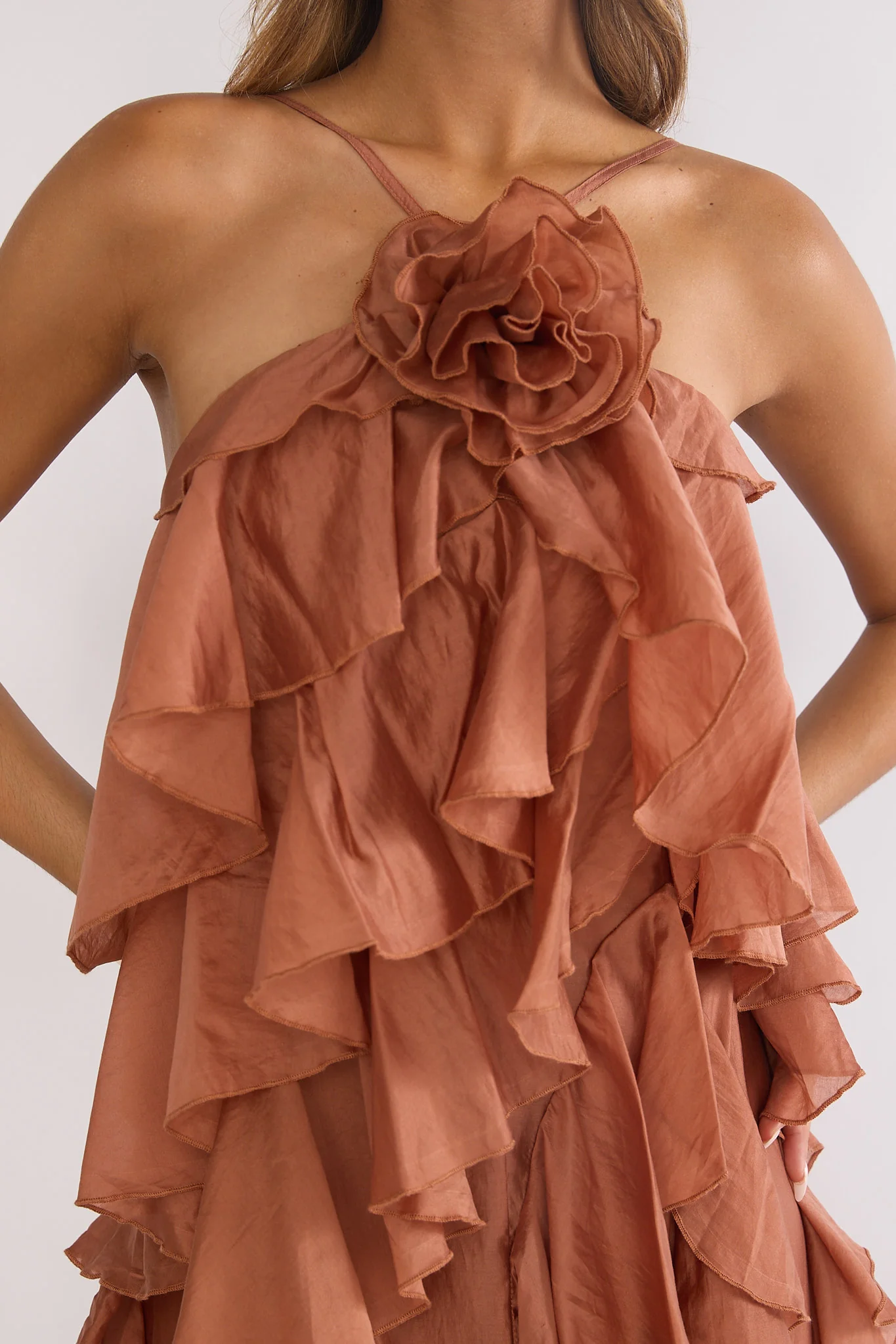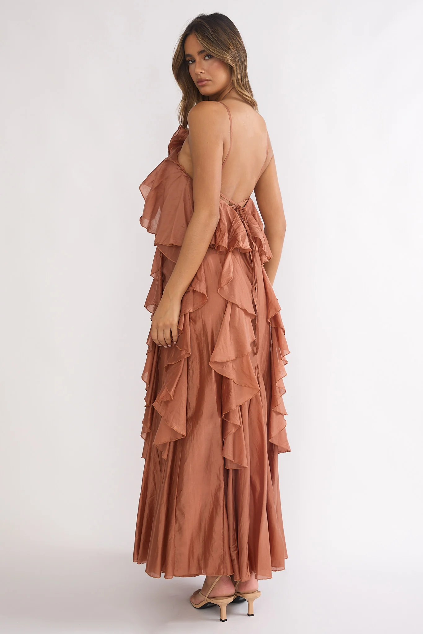 Secret Rendezvous Layered Ruffle Maxi Dress Rust