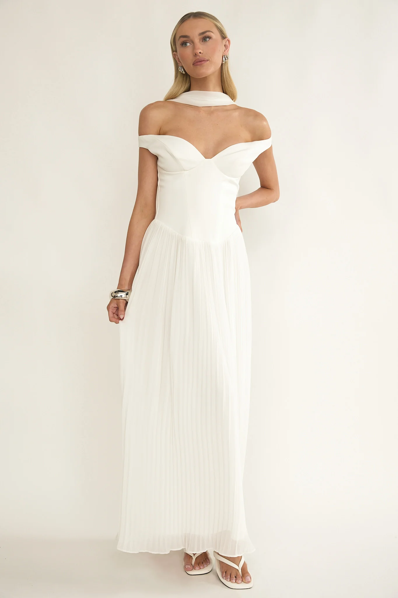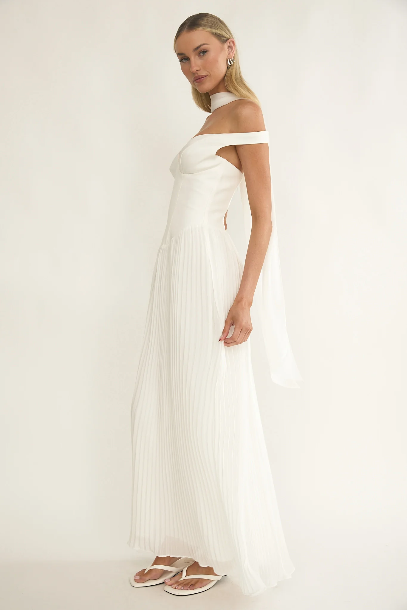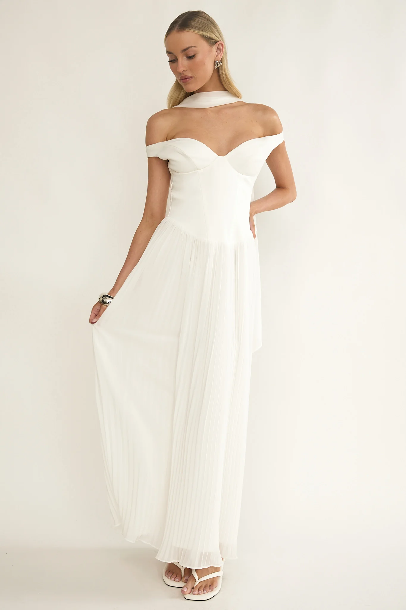 Quinnae Off-Shoulder Accordion Pleat Maxi Dress White