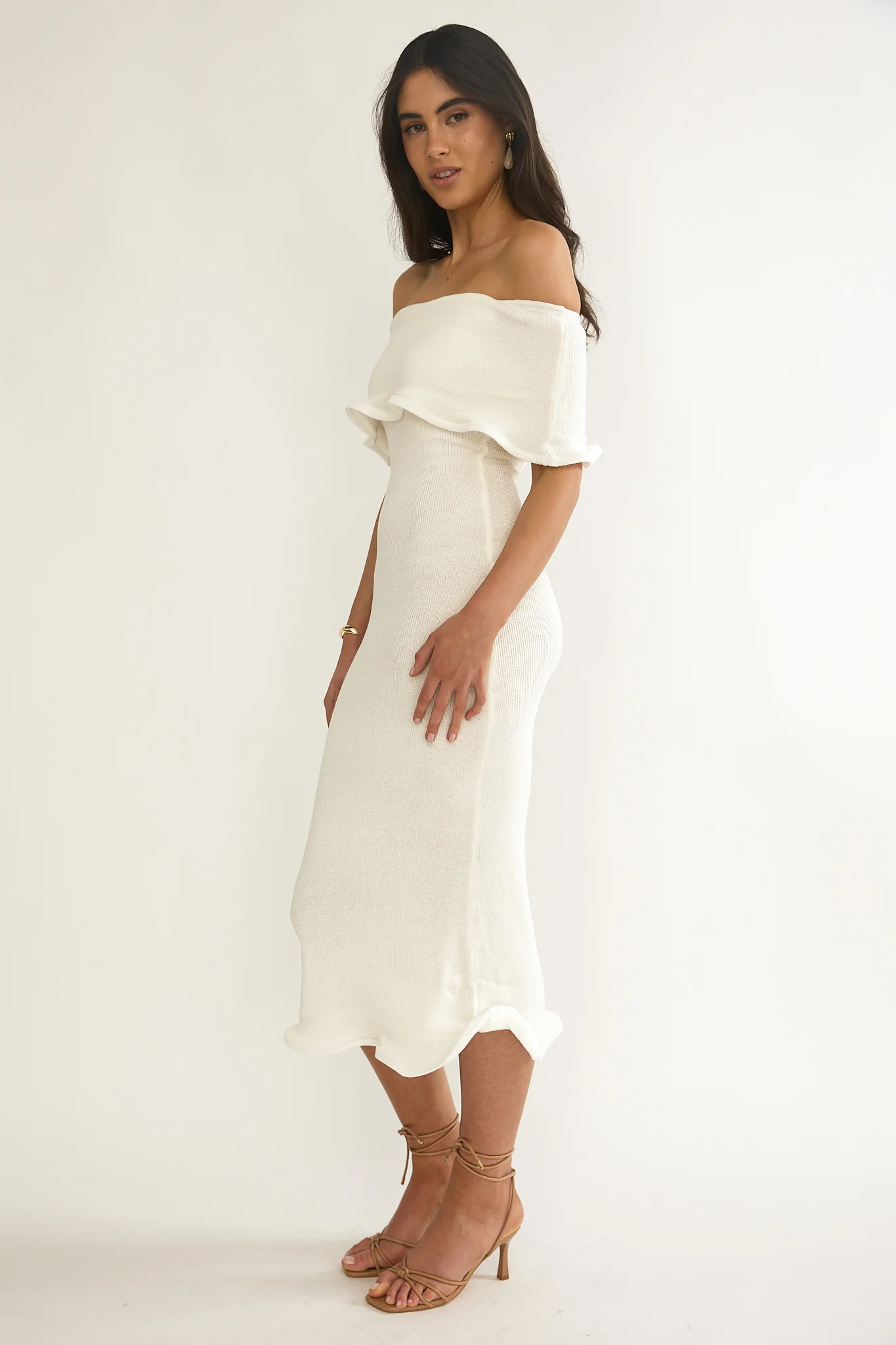 Rayna Off-Shoulder Midi Dress Ivory